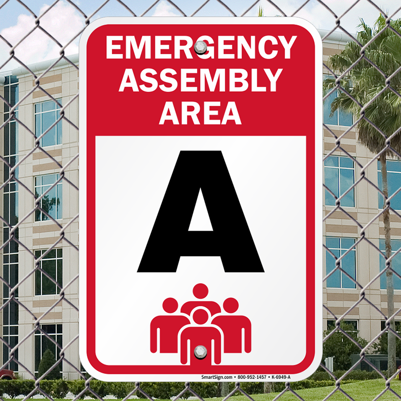 Emergency Assembly Area & Fire Drill Sign: Emergency Assembly Area A K-6949-A