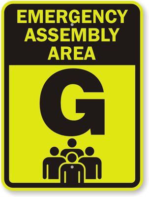 Emergency Assembly Area & Fire Drill Sign: Emergency Assembly Area G K-6950-G