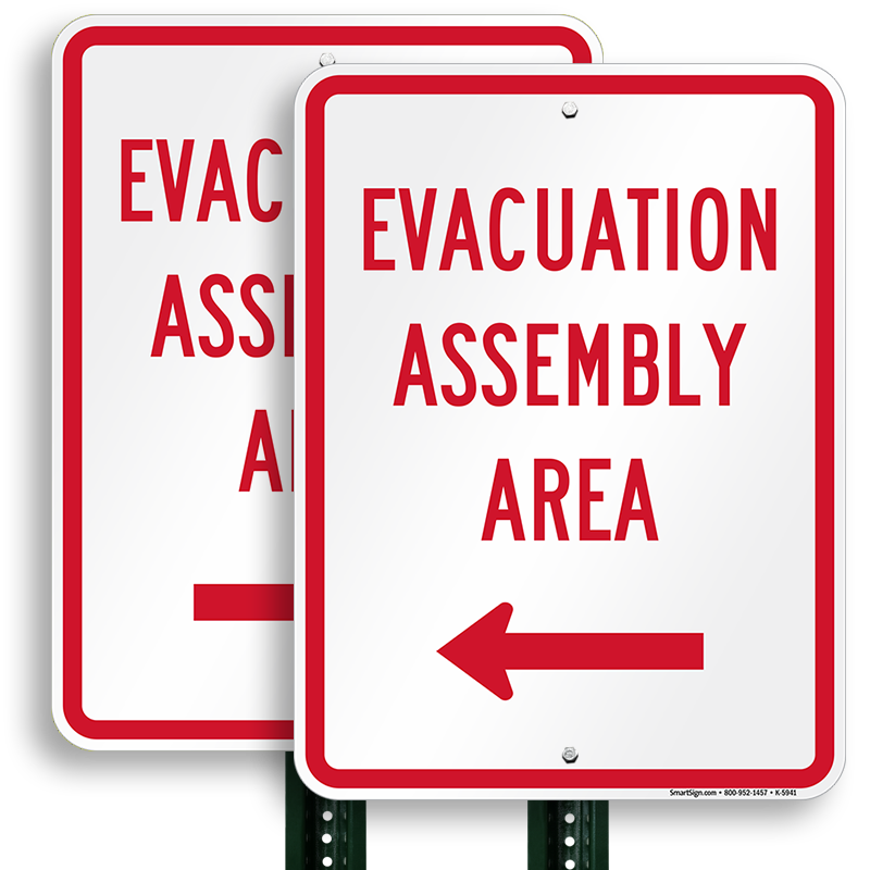 Fire and Emergency Sign: Evacuation Assembly Area (with Left Arrow) K-5941 Learn More...