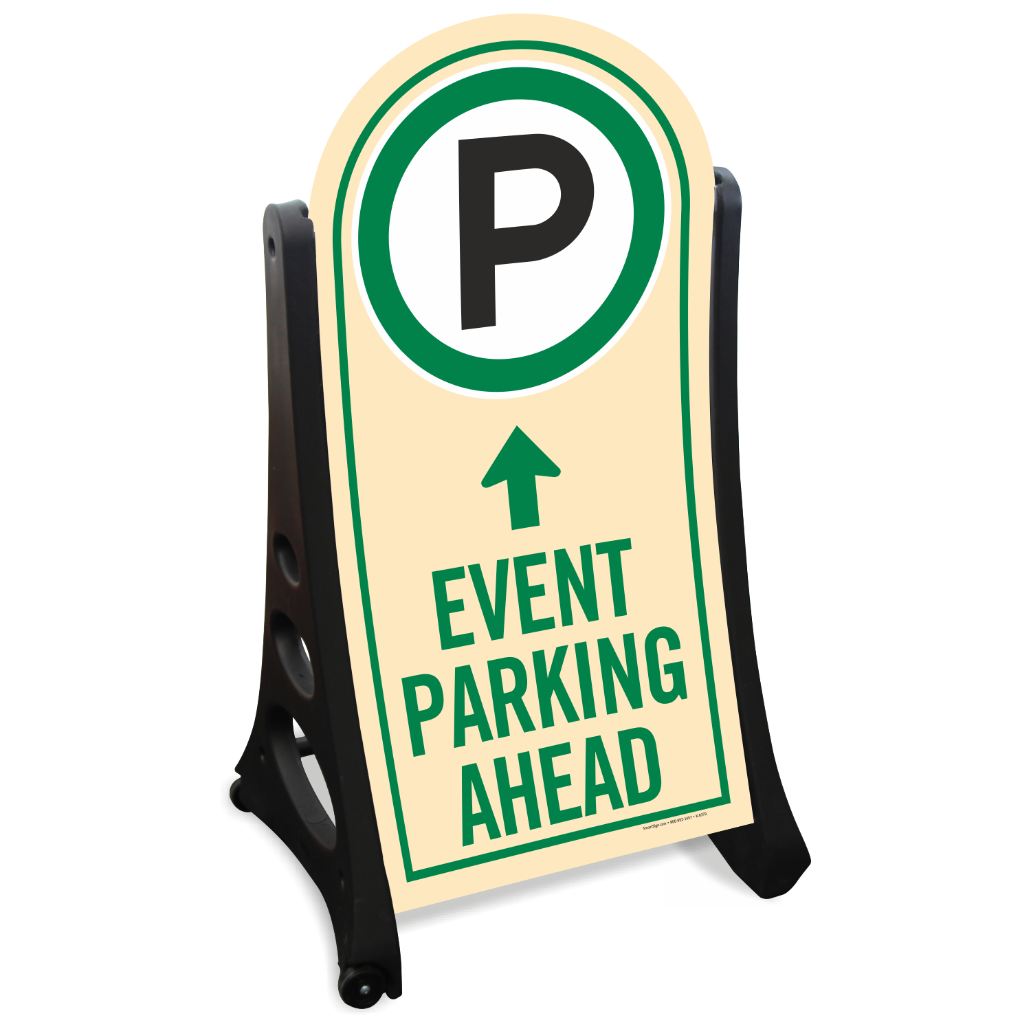 A well marked parking zone is always appreciated in events. Direct guests to event parking with this portable Sidewalk Sign. Easily install and remove the sign when required.