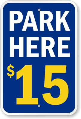 Pay Parking Sign: PARK HERE $15 K-7198-15 Learn More...