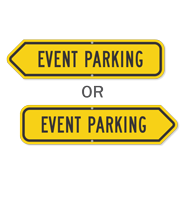 Bold and hard-to-miss, these arrow signs sport a yellow background and an arrow shape that points towards left and right directions, respectively, for showing navigation to the 'Event Parking.'