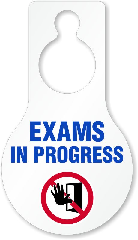Pear Shaped Plastic Door Hang Tag: Exams In Progress (with Stop Hand Symbol) TG-1483