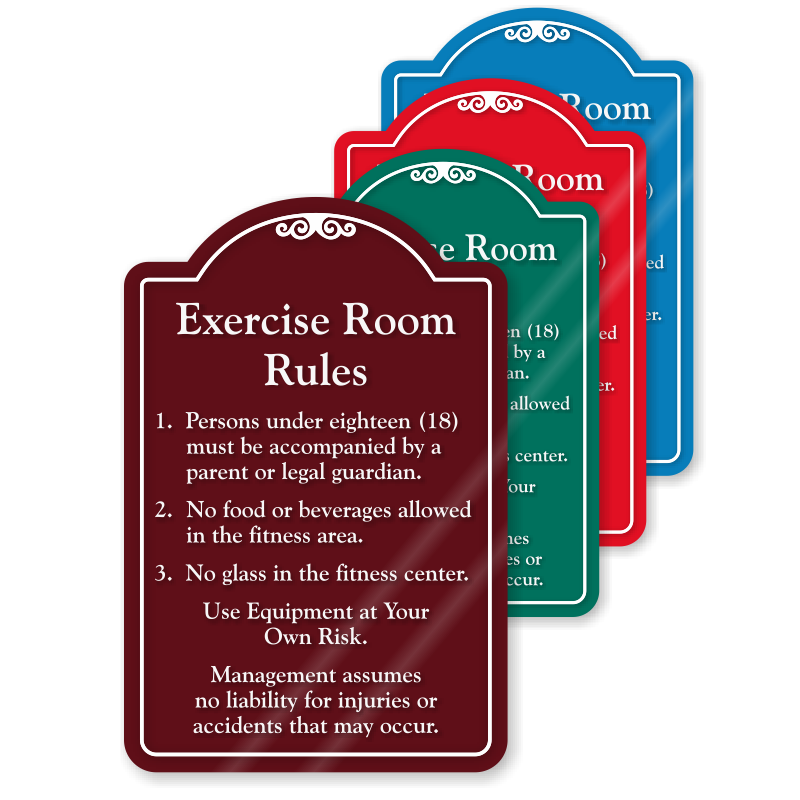 Make your exercise room rules known to everyone with this eye-catching designer sign.