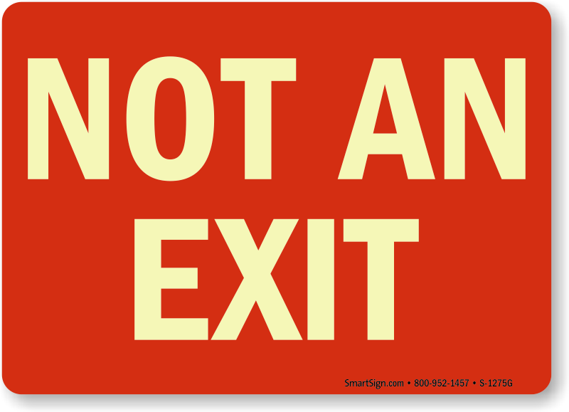 In ana emergency, fire exit signs are critically important. Use a "not an exit" sign. Make your point.