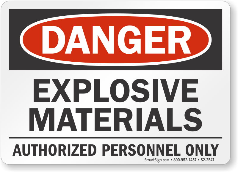 OSHA Danger Sign: Explosive Materials, Authorized Personnel Only