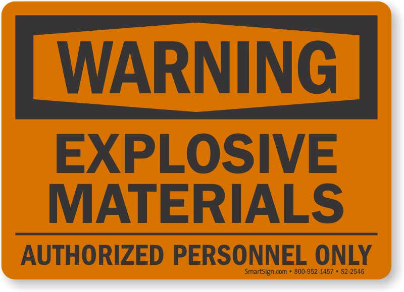 OSHA Warning Sign: Explosive Materials, Authorized Personnel Only