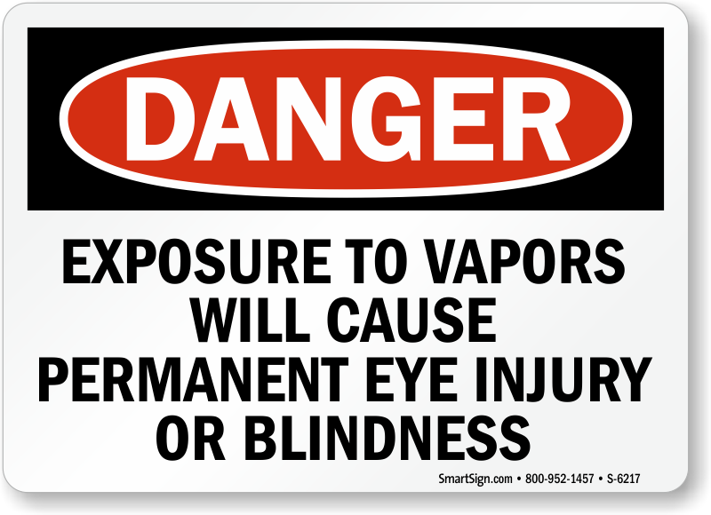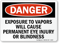 Warn workers about the hazards of chemical handling, this OSHA Danger Sign clearly indicates that exposure to vapors will cause permanent eye injury or blindness.