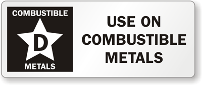 Fire Extinguisher Label: Class Label - 'D' Use On Combustible Metals Learn More...