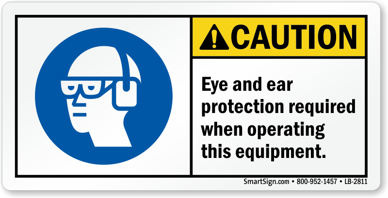 ANSI Caution Safety Label: Eye And Ear Protection Required When Operating This Equipment (With Ear Muffs & Safety Glasses Pictogram) LB-2811