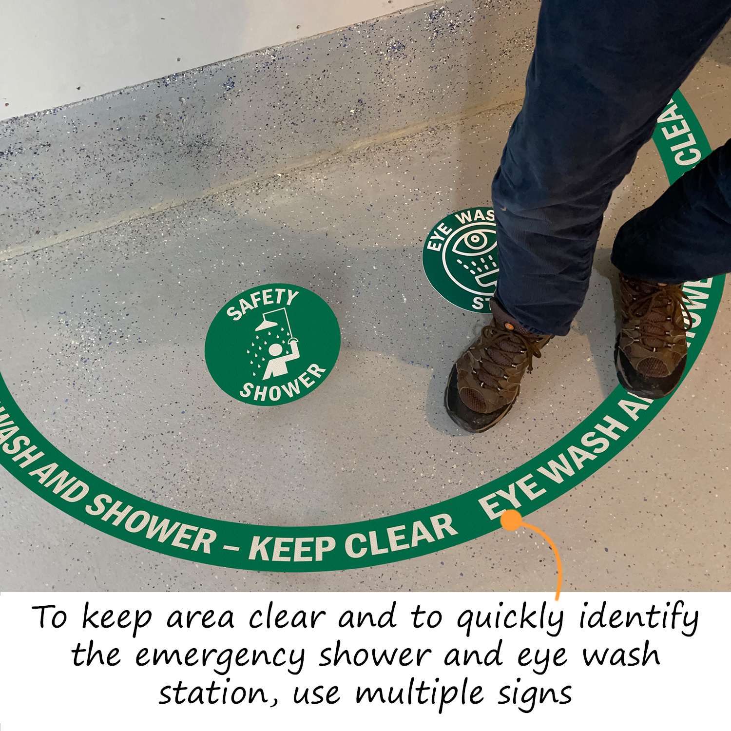 Keep the eyewash and shower station of your facility readily accessible. Install our 2-part adhesive floor sign and communicate the clear zone.