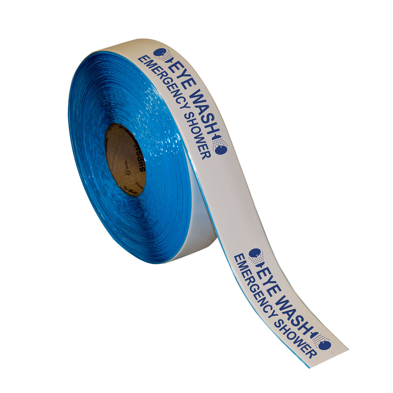 Superior Markâ„¢ Floor Message Tape: Eye Wash Emergency Shower Marking Tape with Liner (Blue) Learn More...
