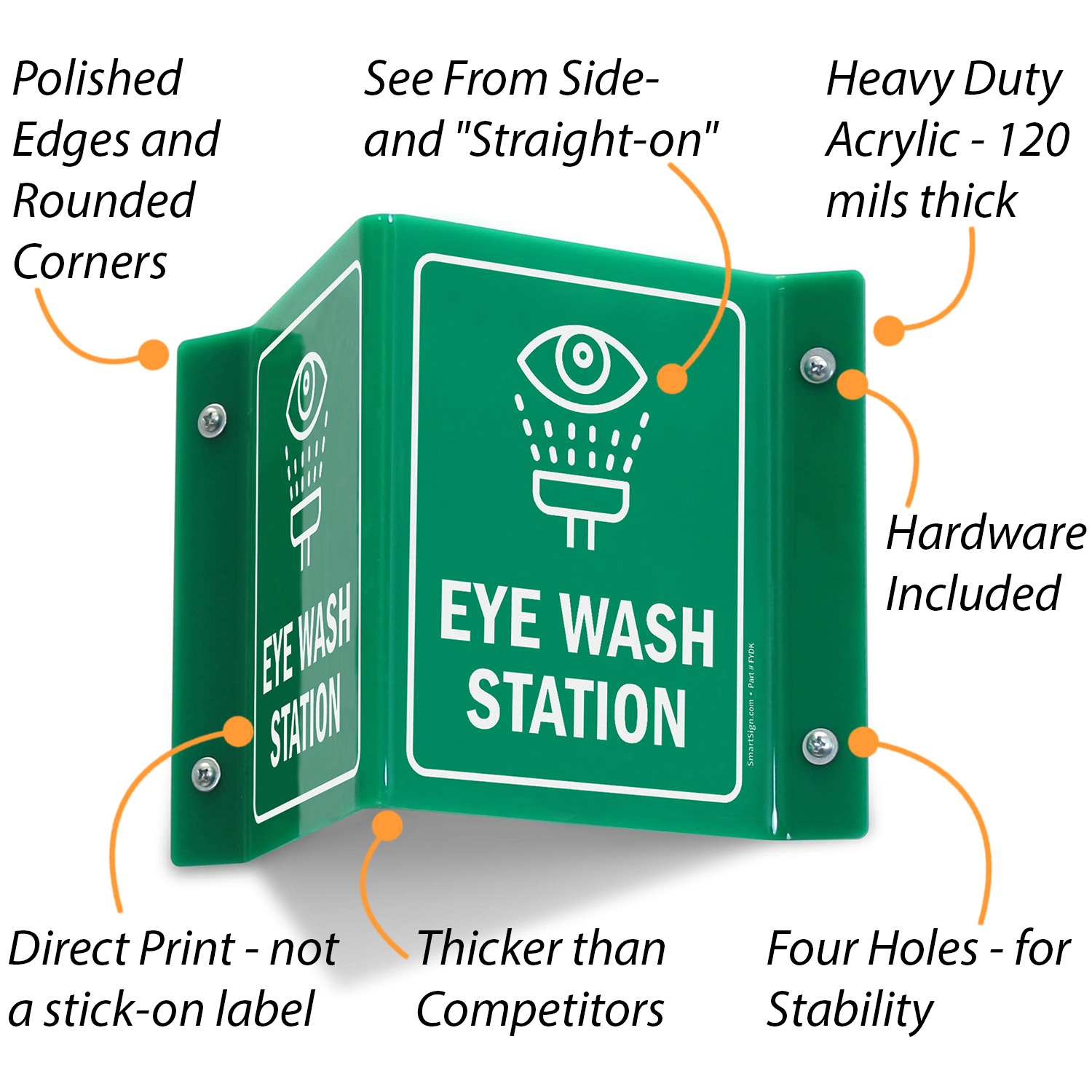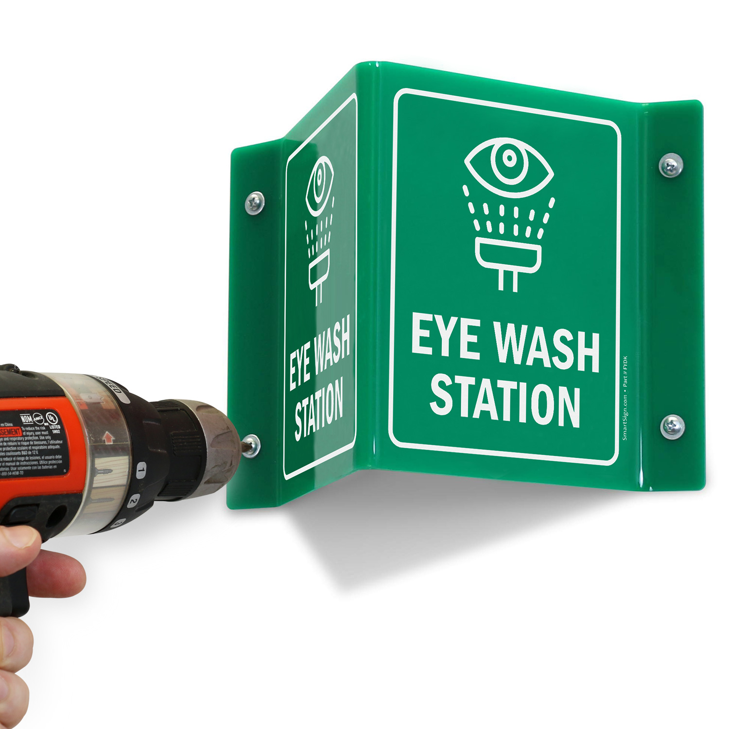 Eye Wash Station Sign can be spotted from any direction because of two-sided printing.