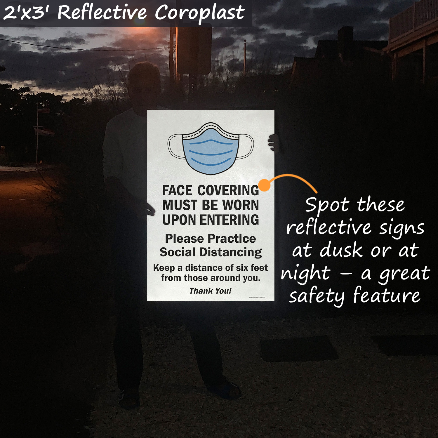This Social Distancing Sign asks individuals to wear face covering right when entering.