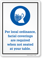 Face Covering Sign: Per Local Ordinance, Facial Coverings are Required When Not Seated At Your Table S2-4818