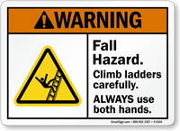 Keep ANSI Warning Sign posted for workers working on ladders. Tell them to use two hands to climb the ladder and reduce risk of falls.
