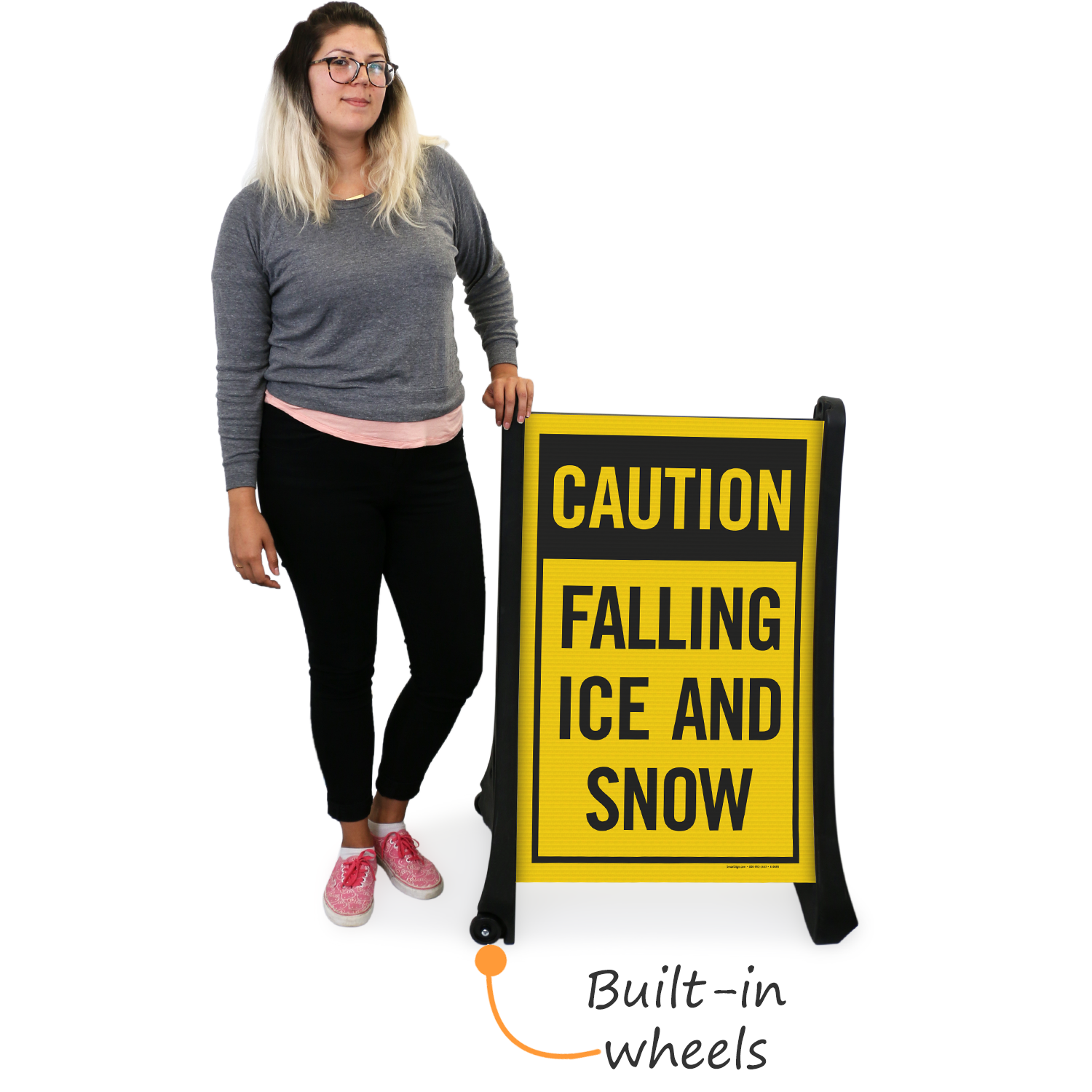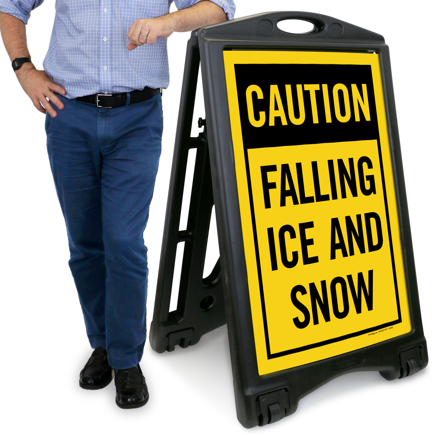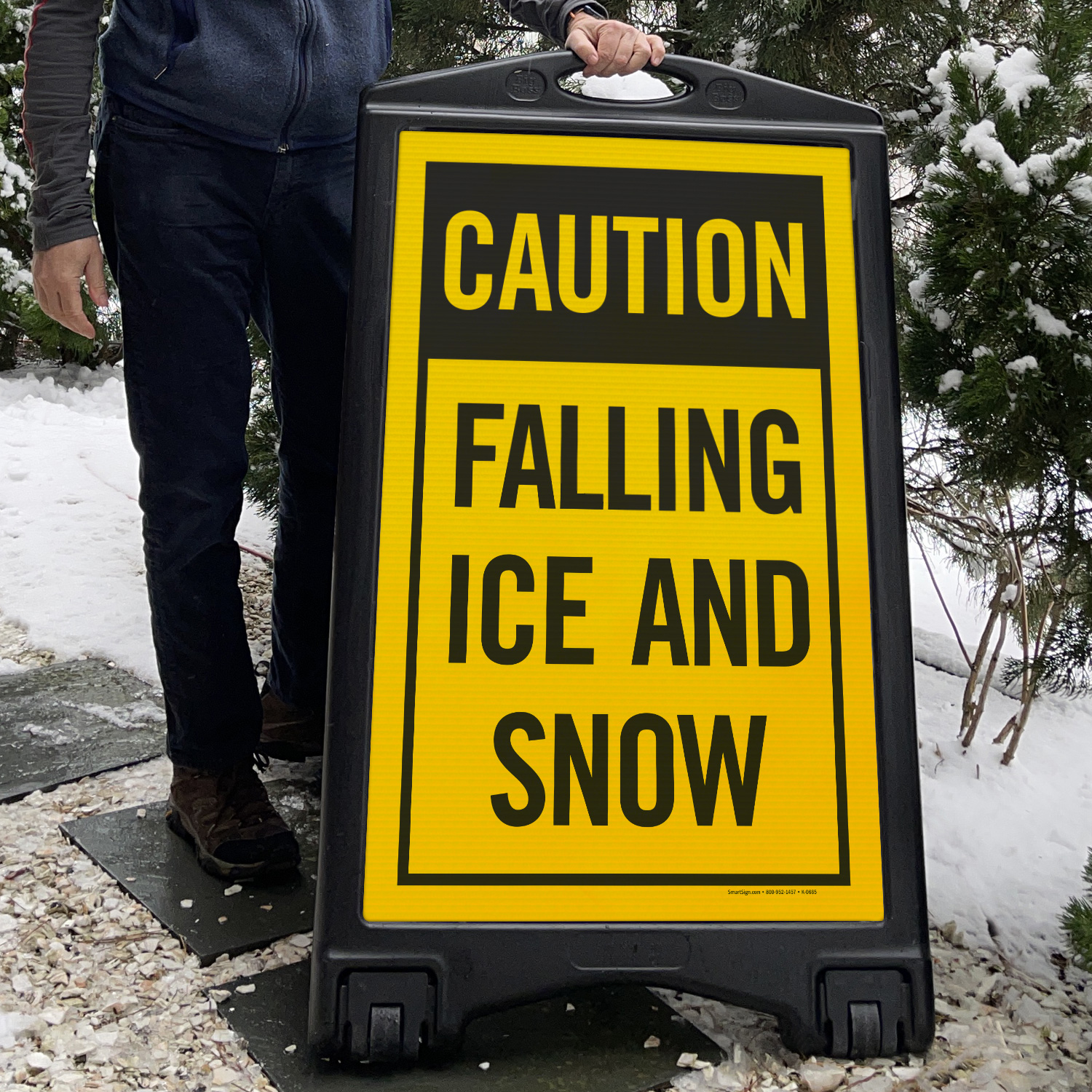 Alert the public that this area poses severe falling snow and ice dangers, and all passerby should proceed with caution.