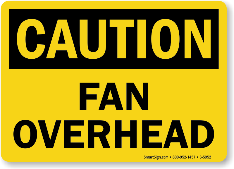 Alert everyone about overhead electrical hazard with a Fan Overhead OSHA Caution Sign.