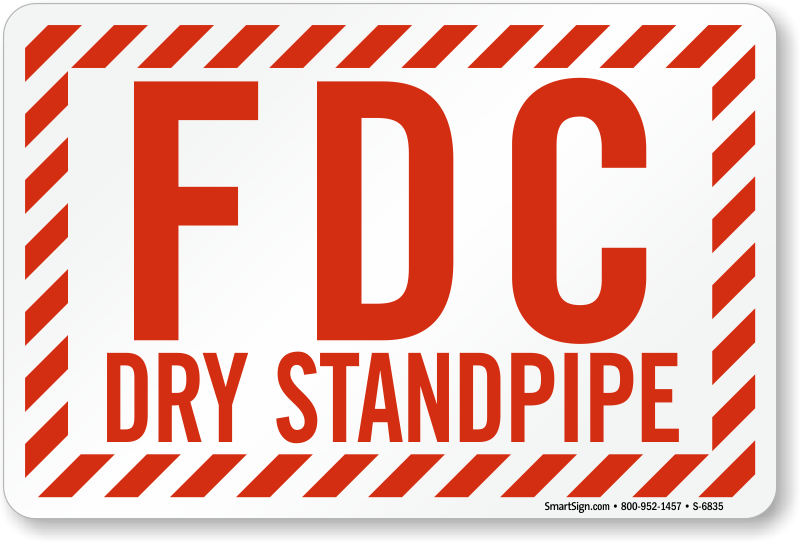 It is important to clearly mark fire department connections in your building for an immediate action in case of an emergency situation. Use this sign with a striped border to mark the dry standpipe.