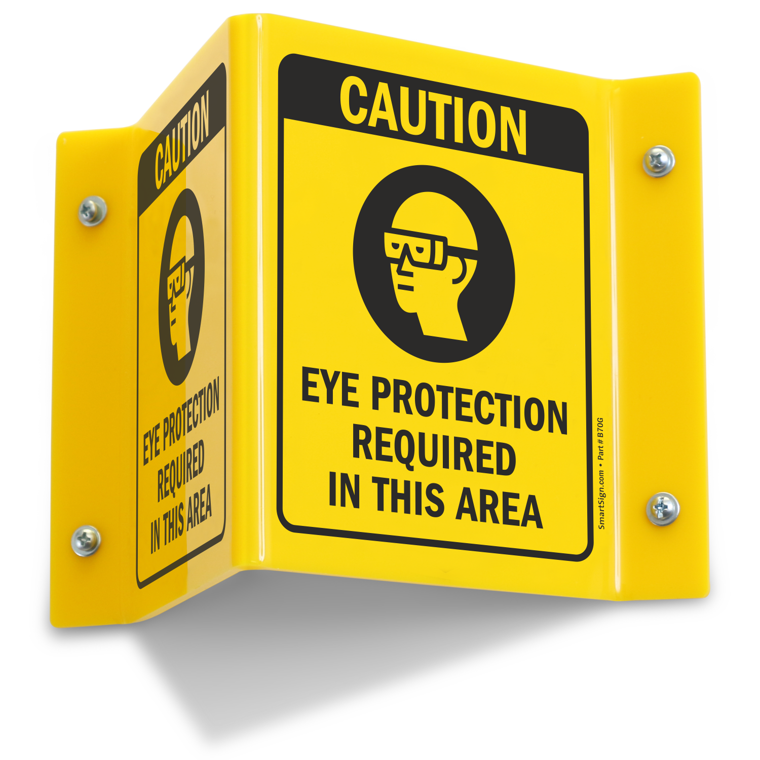 Projecting HazCom Sign, 6in. x 5in.: Caution Eye Protection Required in this Area (with Symbol)