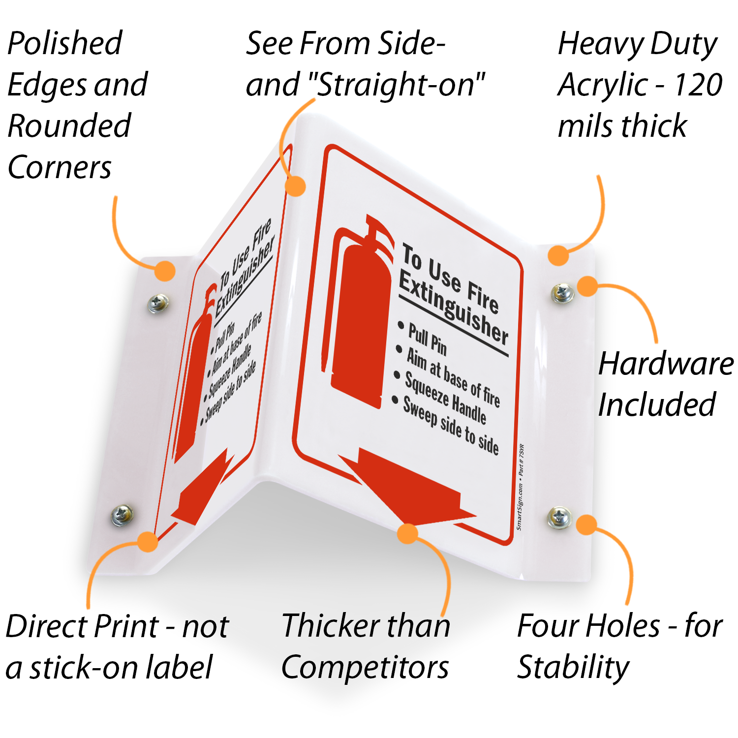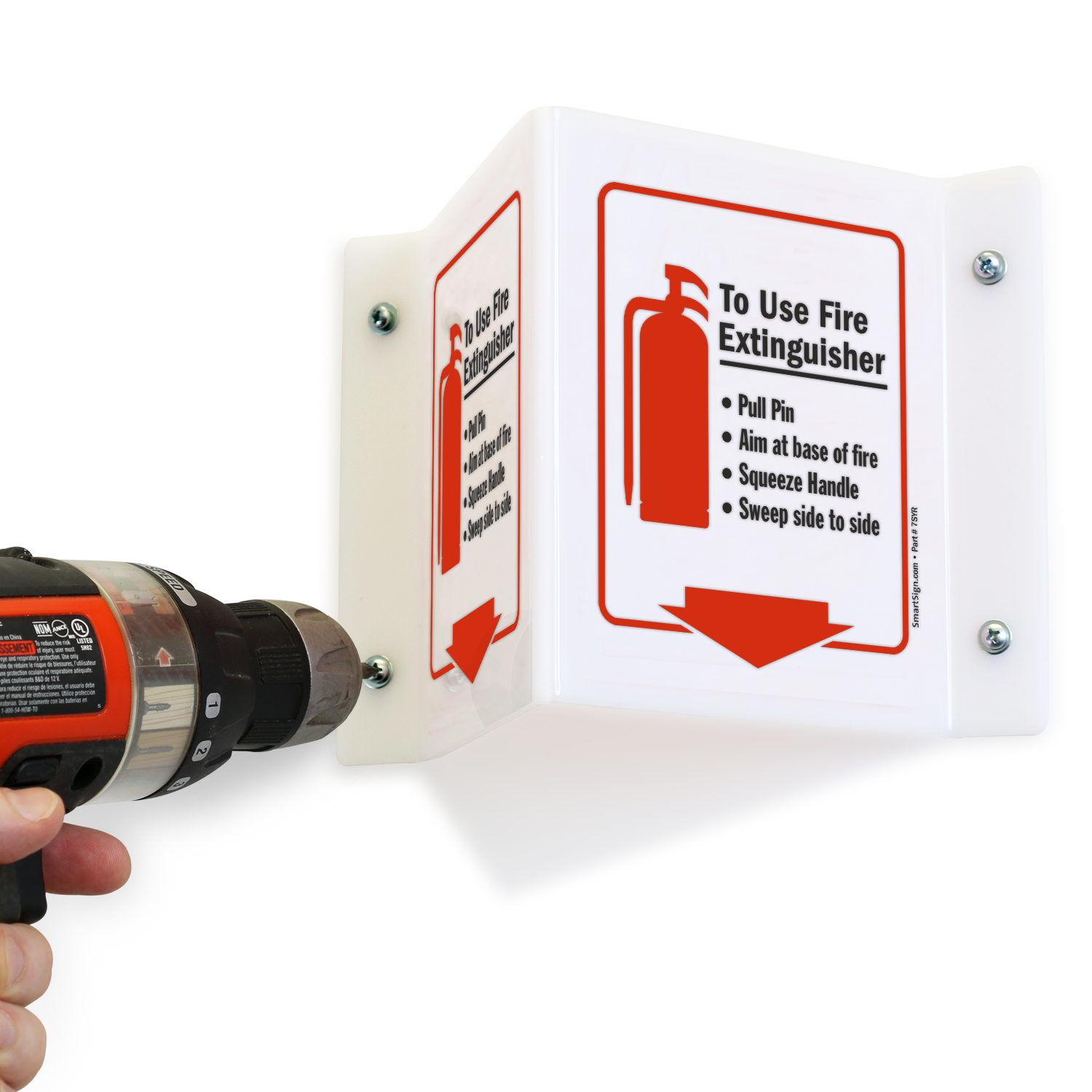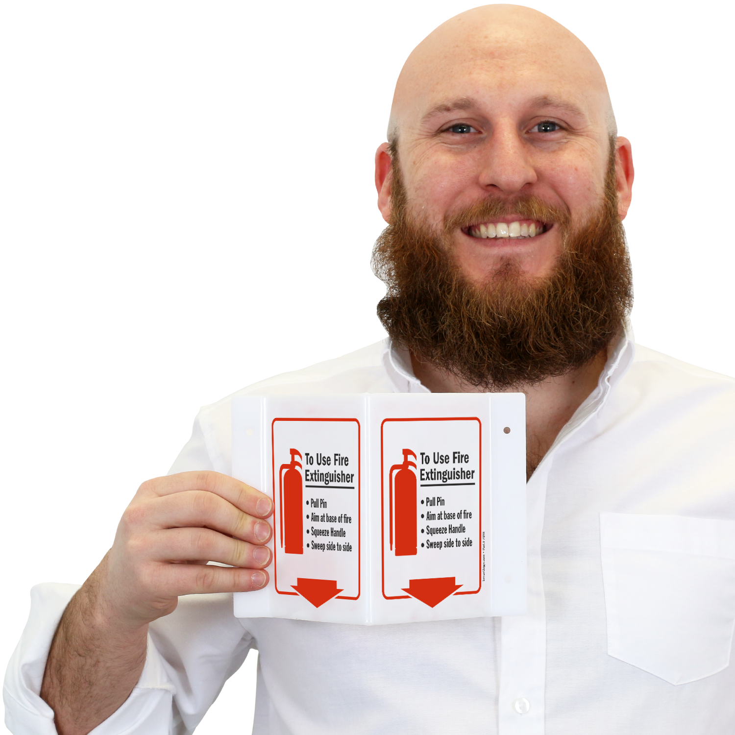 Use a "to use fire extinguisher … (with symbol and graphic)" sign. Signs work - they guard against carelessness.