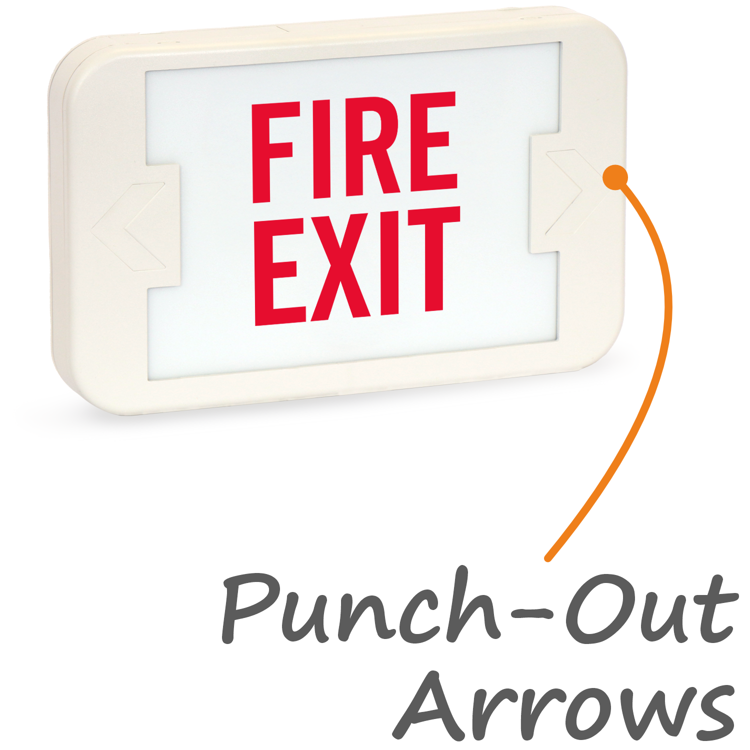 5VA flame retardant thermoplastic LED sign comes with snap-on directional arrows.