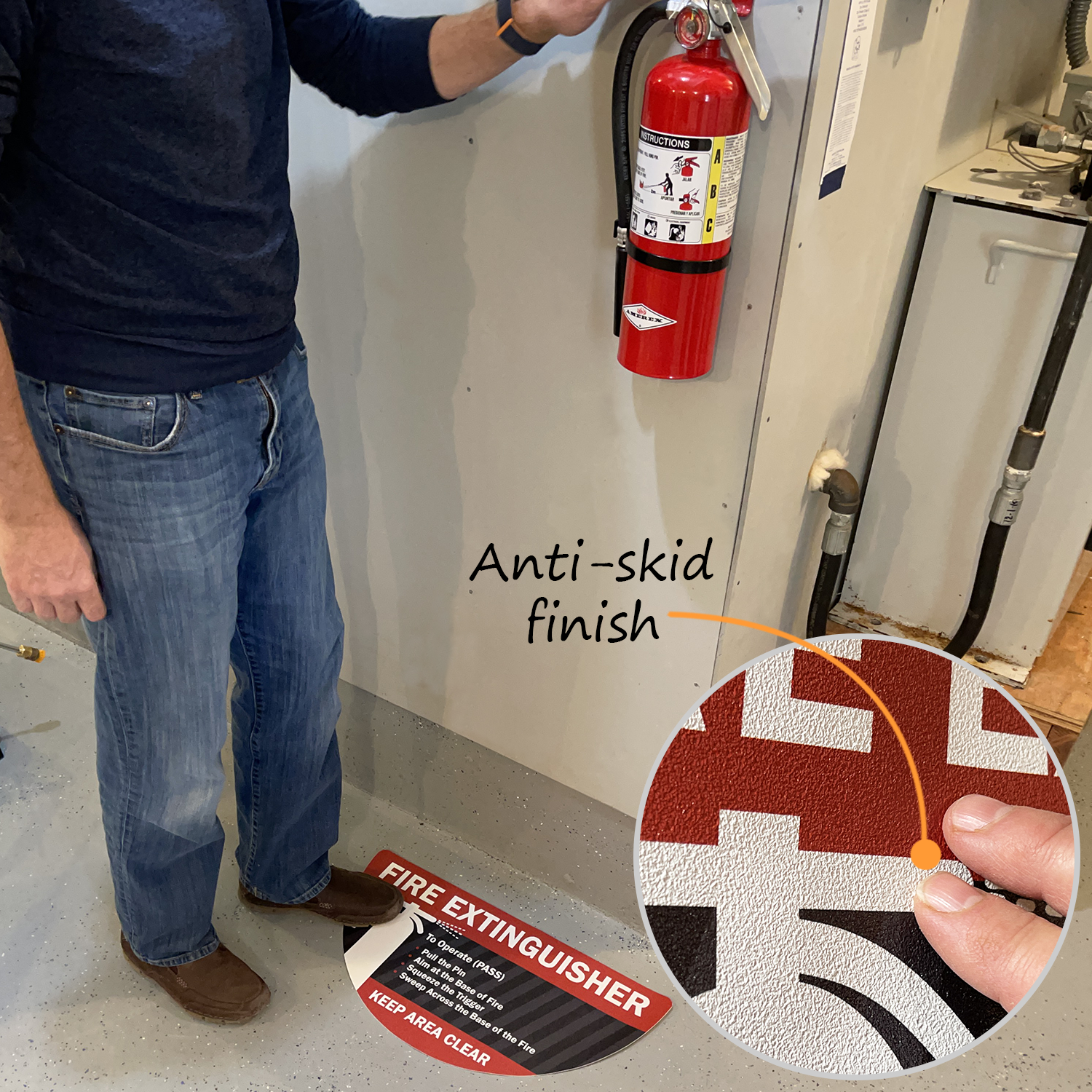 Achieve a quicker emergency response time with our adhesive floor sign that ensures easy access to the fire extinguisher by communicating a clear zone.