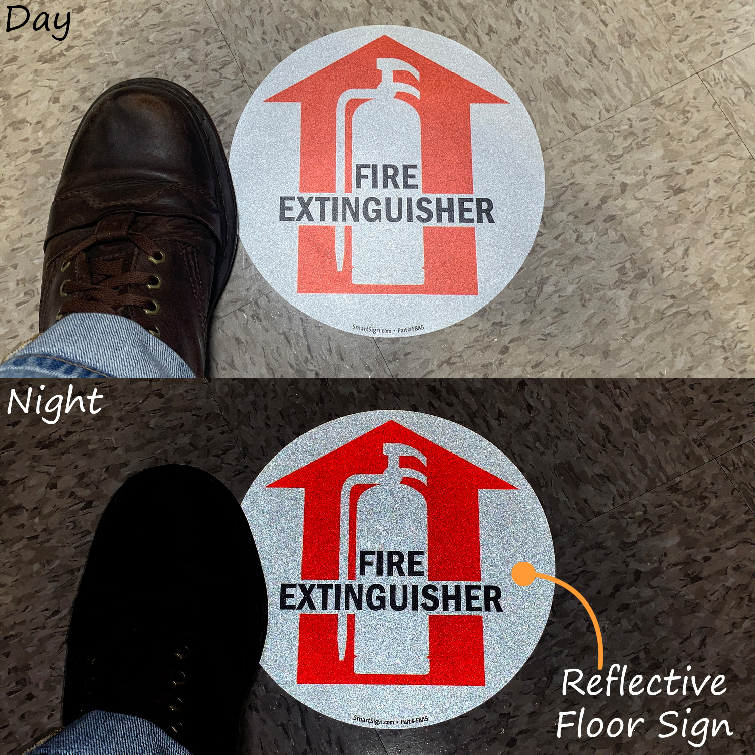 - Each extinguisher floor sign is 17" in diameter.