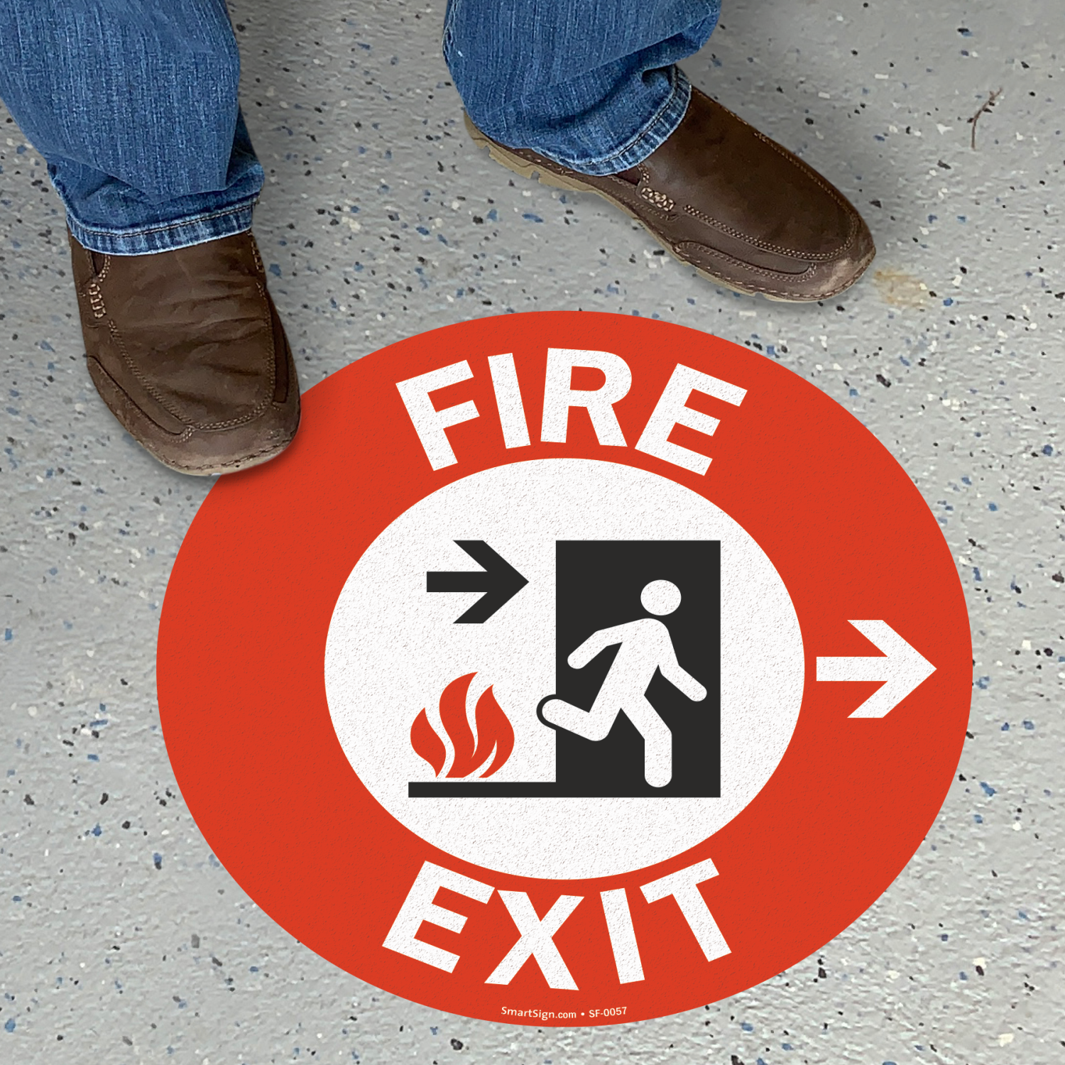 Point toward a Fire Exit - your floor. These large-sized 17" grit floor signs are safe and slip-resistant, ready to guide everyone to a safe exit.