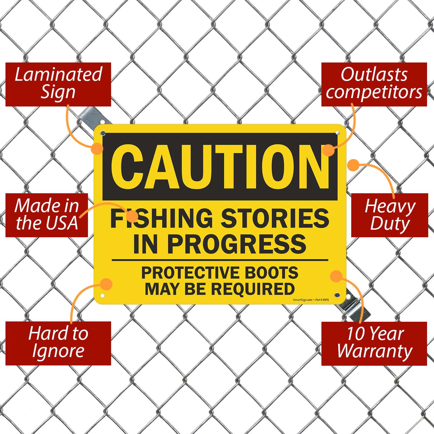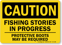Up for another fishing anecdote? Use this humorous OSHA Caution Sign to remind people to wear protective boots while fishing.