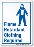 Use 'Flame Retardant Clothing Required' sign to give people the information they need when they are dealing with convective heat, radiant heat, contact heat, or molten metal splashes.