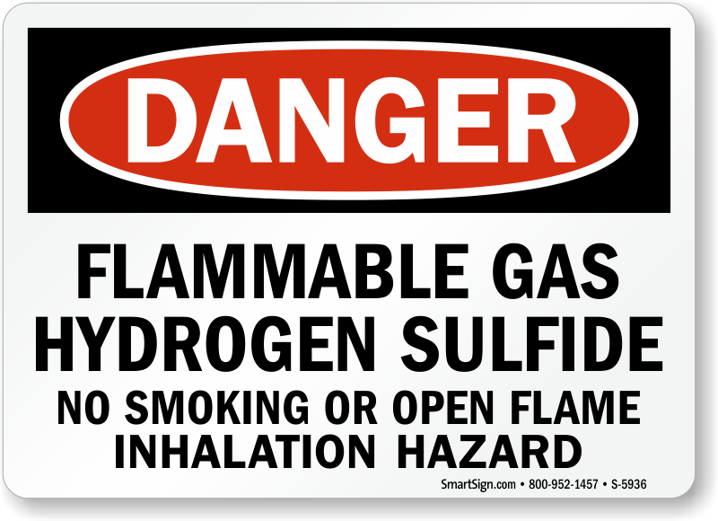 When storing Hydrogen Sulfide, post this OSHA Danger Sign to inform everyone of the precautions required around the flammable gas and the hazard that comes with it.
