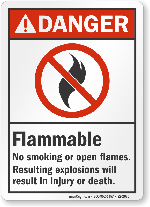 ANSI Danger Sign: Flammable - No Smoking Or Open Flames, Resulting Explosions Will Result In Injury Or Death S2-2675