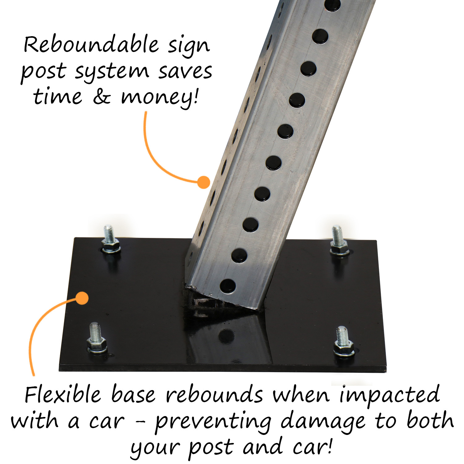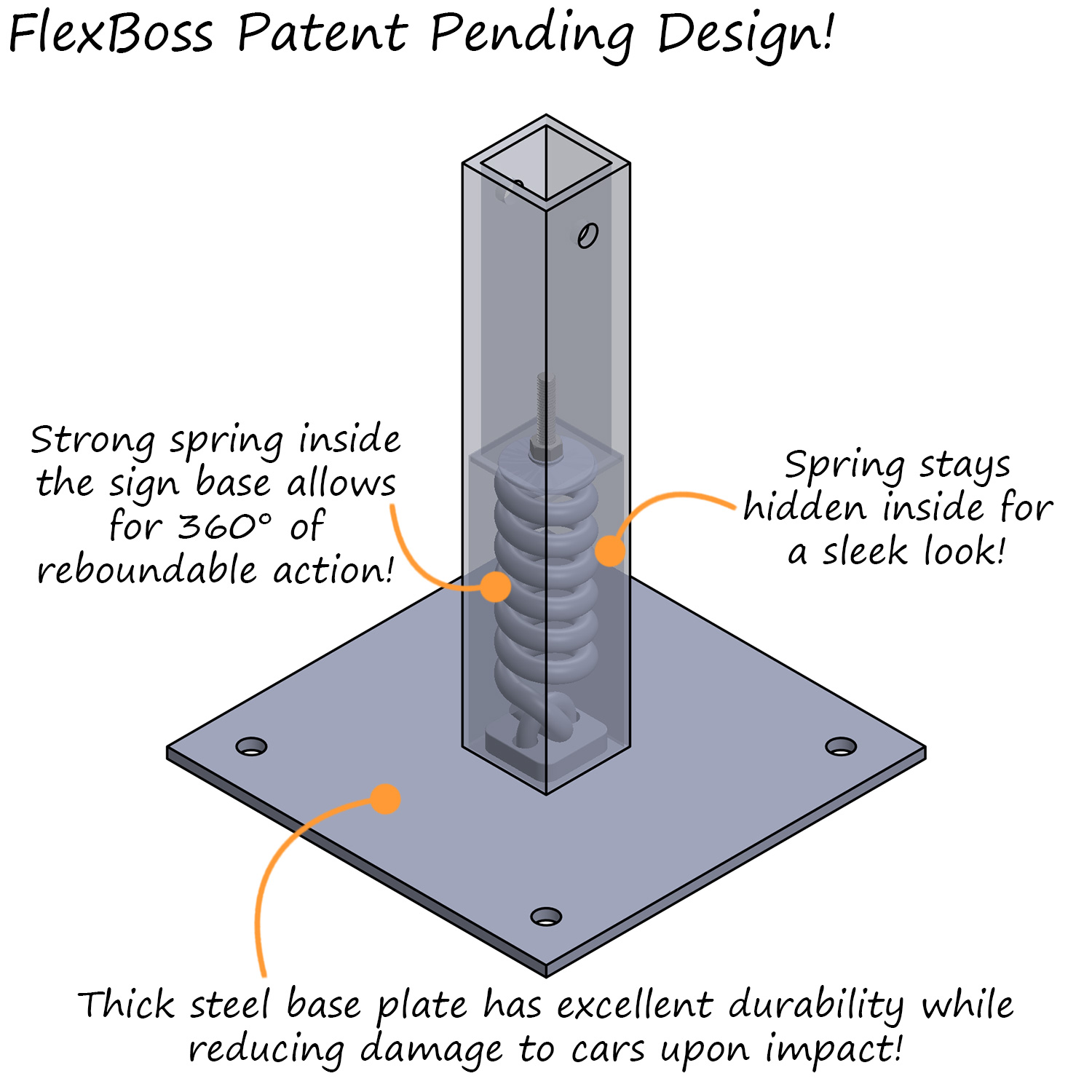 FlexBoss Sign Post system for Asphalt & Concrete attaches easily to the sign post and will protect it for years with its durability, flexibilty, and strength.