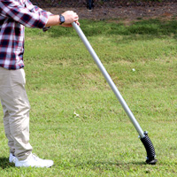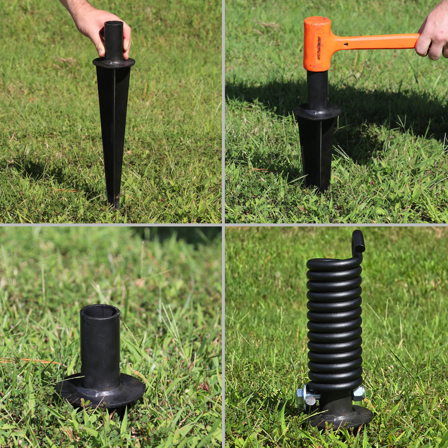 8 ft. tall post is offered with a ground spike for installation into dirt or grass.