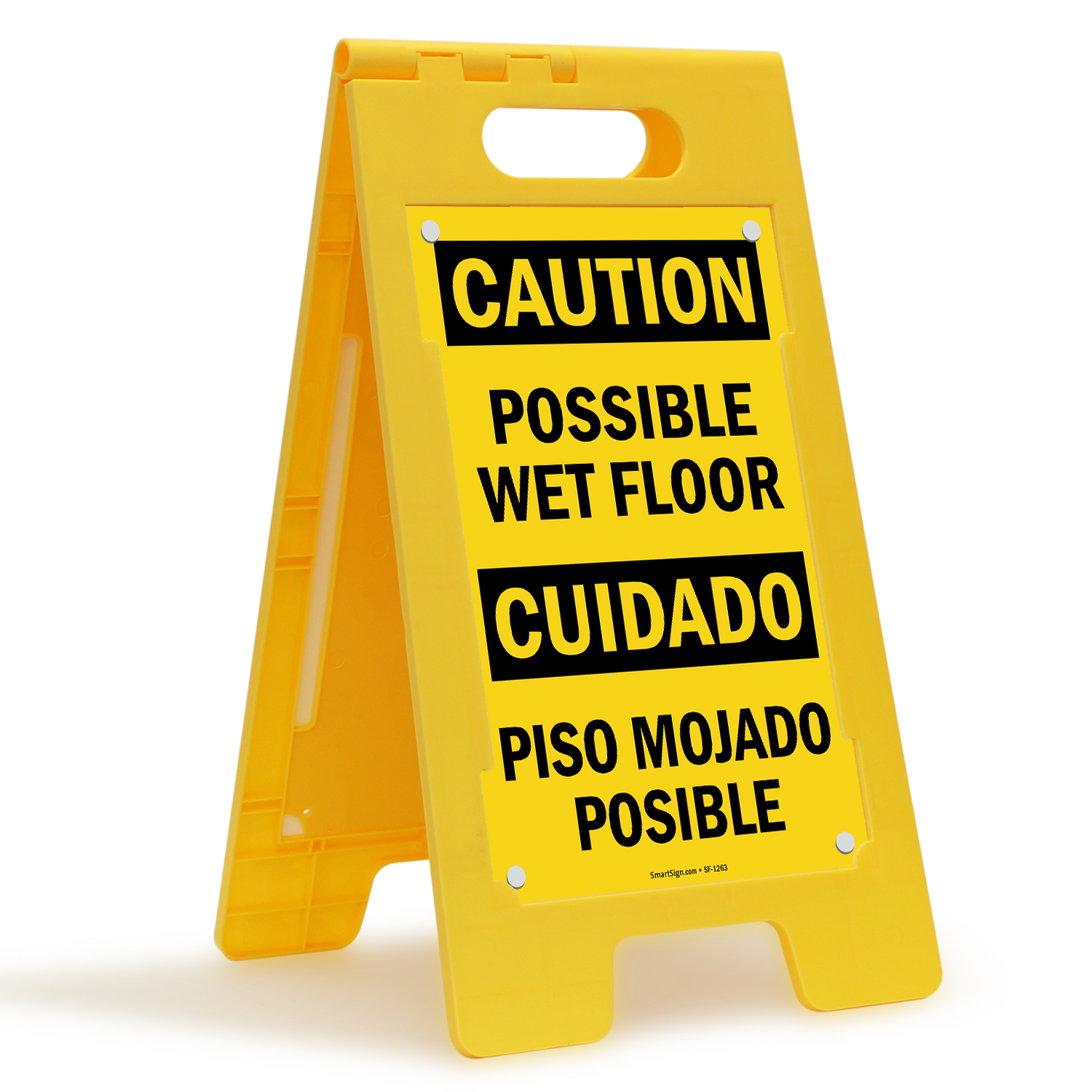 FloorBoss Caution Possible Wet Floor Bilingual Sign: FloorBoss Caution Possible Wet Floor Bilingual Sign SF-1263
