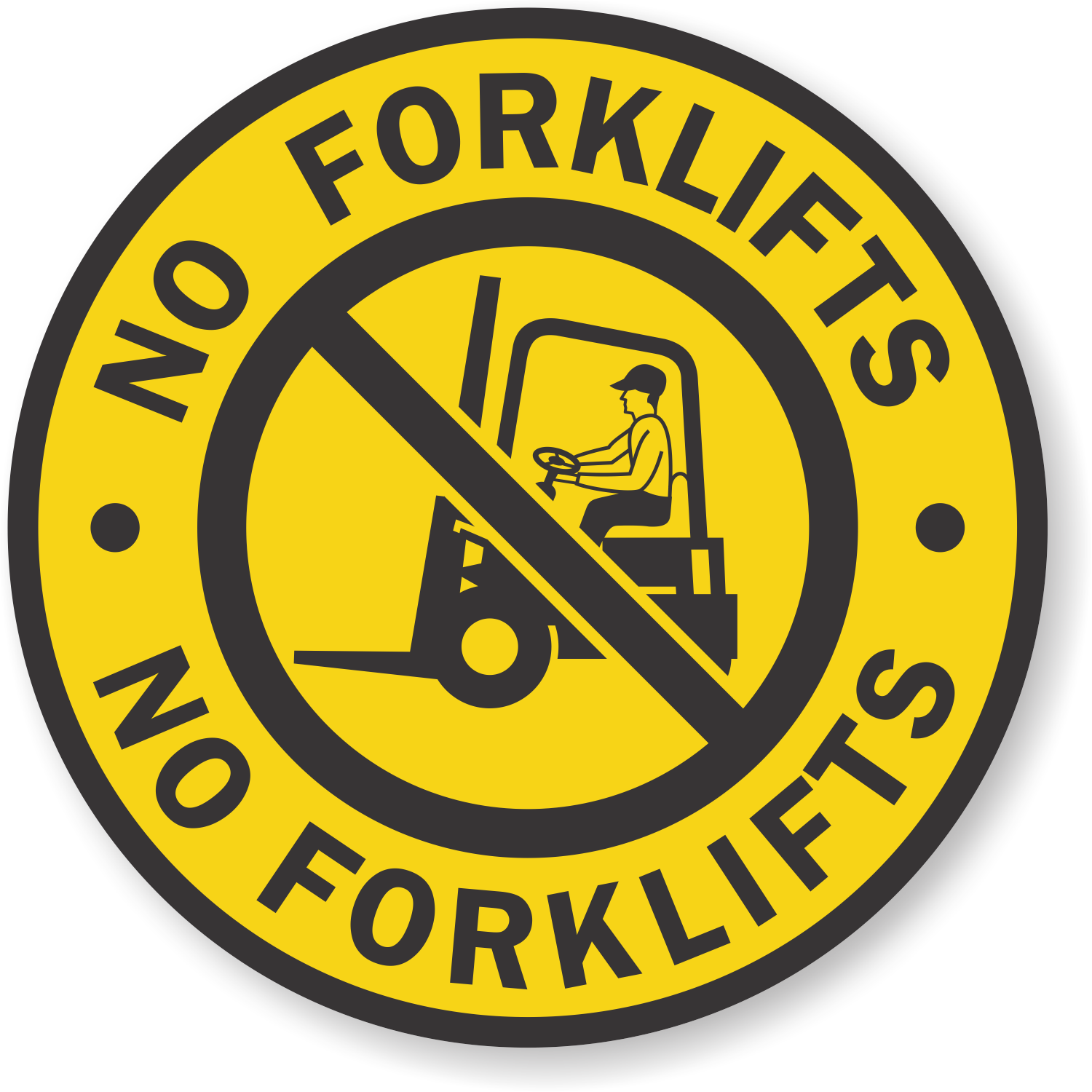 Keep forklifts out. Lay down a warning sign that everyone will come in contact with - a floor sign. Made from durable vinyl and overlaid with either a pebble- or grit-coated laminate that increases surface friction upon contact to prevent slips and skids. Graphic in the middle of this 17" circular sign not just grabs attention but breaks linguistic barriers too.