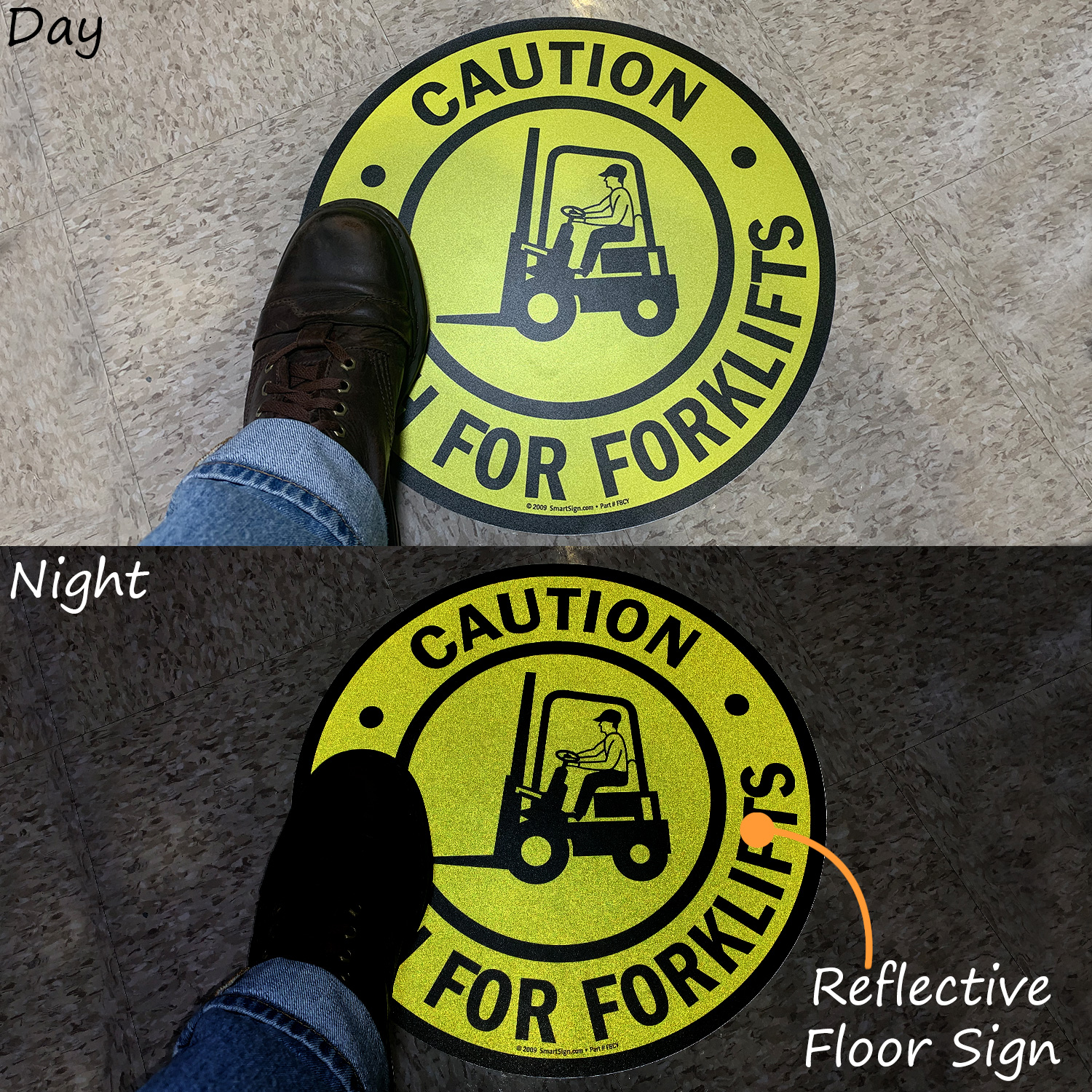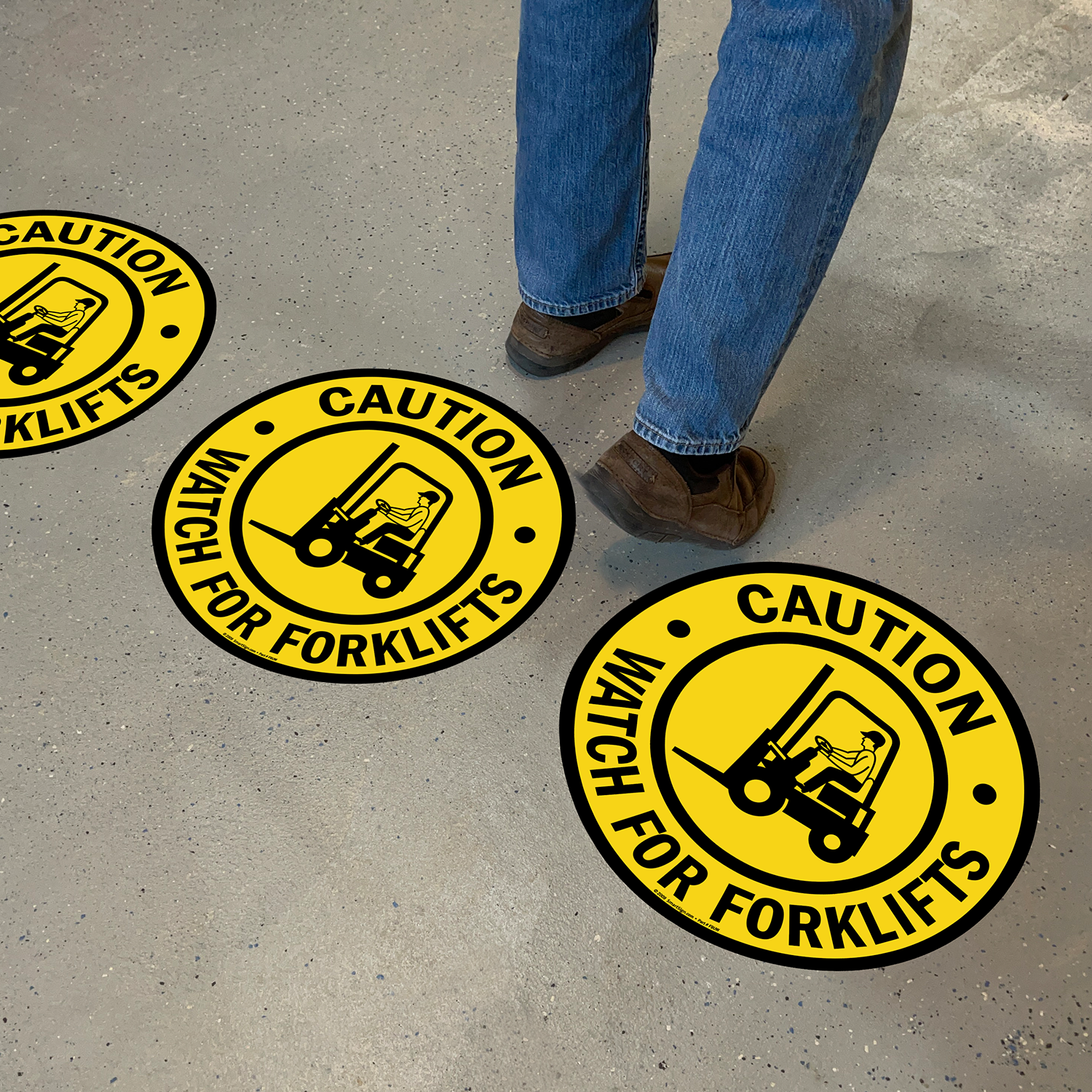Alert pedestrians to the forklift traffic in your workplace. Right under your nose, floor safety messages are prominent and hard to miss. Sign has a pebble or grit texture that offers surface friction, which prevents slip and fall accidents.