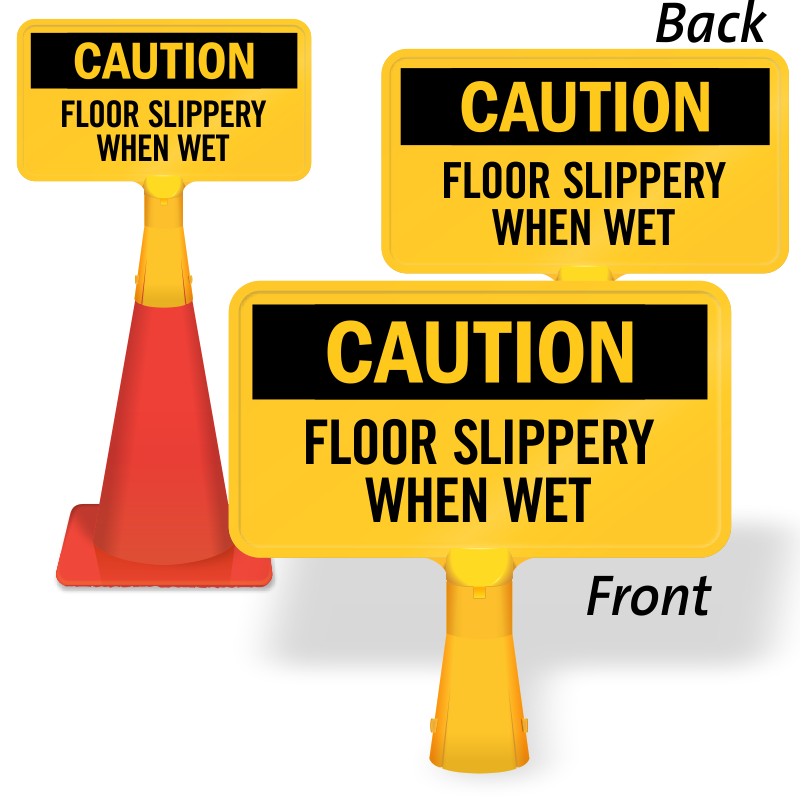 Prevent slip and fall hazards. Warn everyone about slippery floor when it is wet, with this highly visible no-tip, portable Traffic Cone Sign.