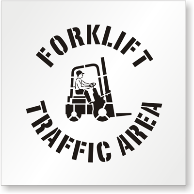 Forklift Traffic Area with graphic premium-grade stencils reinforce safe forklift and warehouse policies. Stencils constantly remind employees to stay alert.