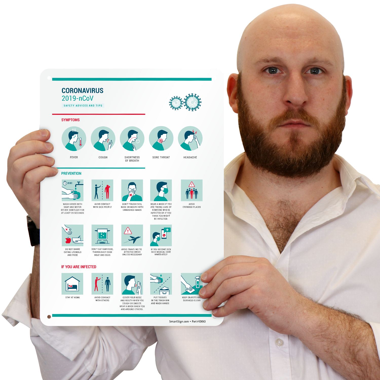 Sign features symptoms to be aware of along with ways to prevent spreading and what to do when infected.