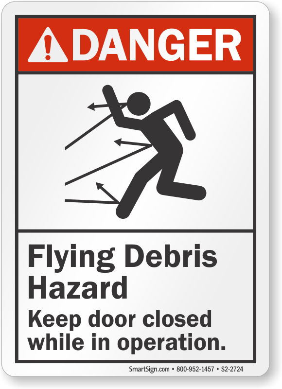 ANSI Danger Sign: Flying Debris Hazard, Keep Door Closed While In Operation