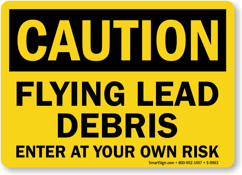 Use a 'Flying Lead Debris - Enter At Your Own Risk' sign. Give safety a boost with a sign.