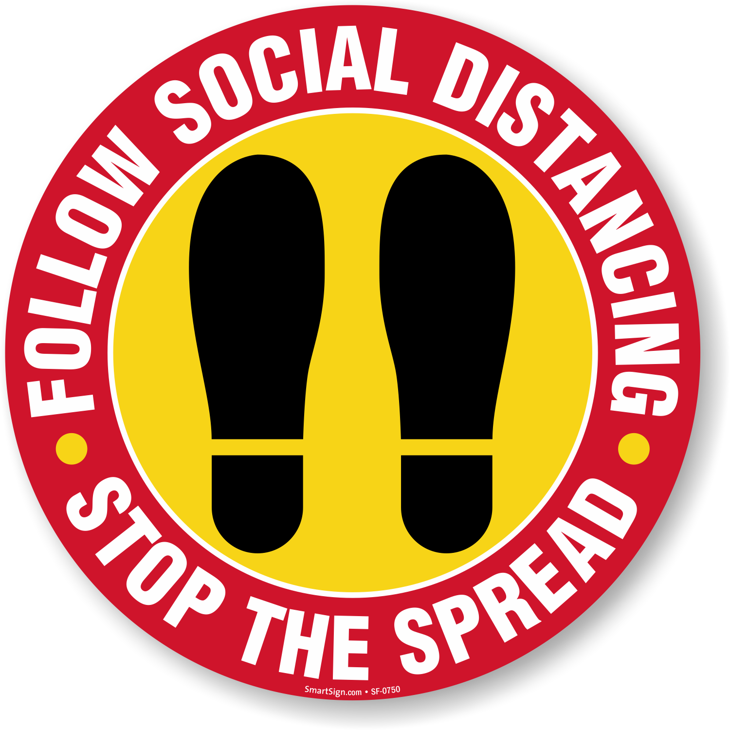 Use this floor sign featuring footprints and indicate where people must stand to maintain the six-feet distance.