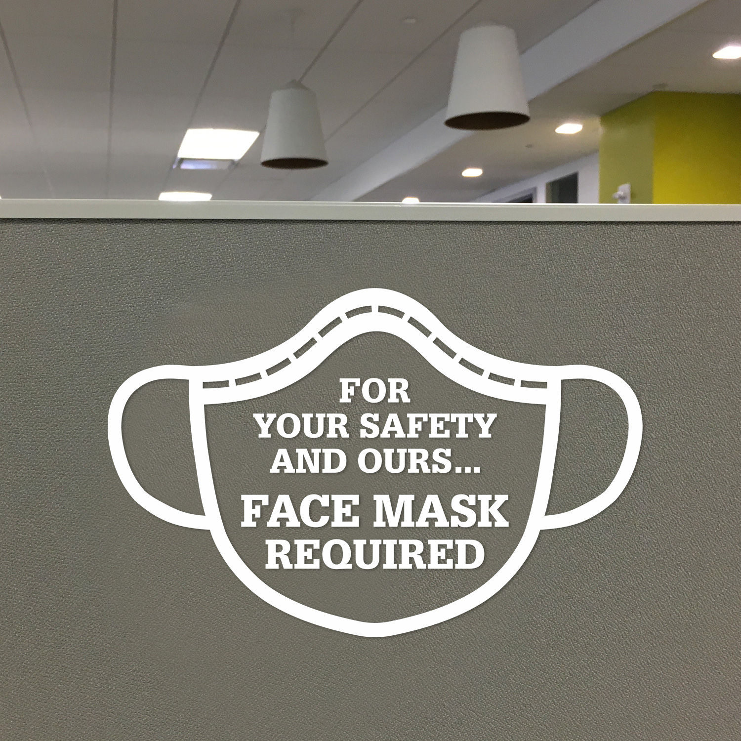 - Space between the message and the mask-shaped border allows for maximum visibility through the glass.