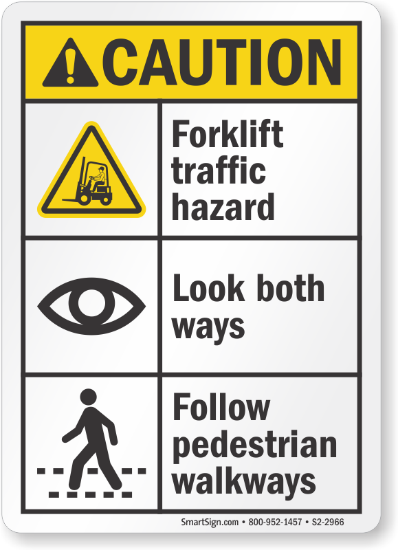 Ask pedestrians to be watchful of forklift traffic. ANSI Caution Sign features vivid pictograms to make your message clear.