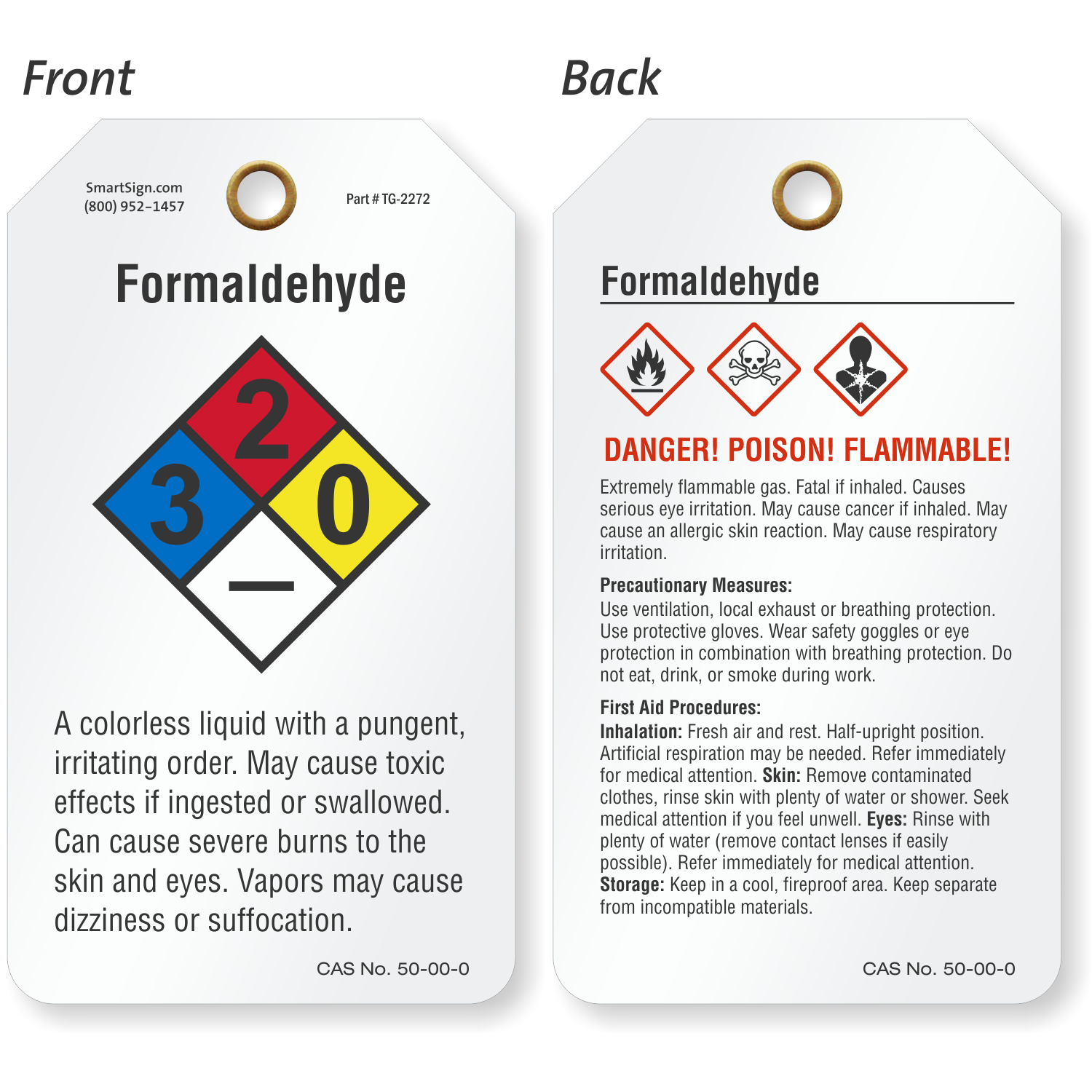 A Formaldehyde chemical tag will help prevent an avoidable and unnecessary accident. Nothing works better to increase safety than a Formaldehyde safety tag.