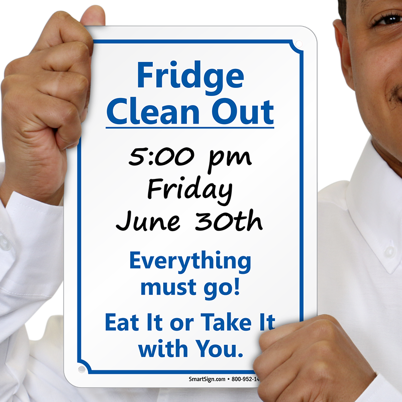 Mention your official time and date on this Fridge Clean Out Sign to inform patrons to clean up their share of belongings from the fridge before that.