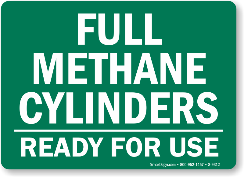 Gas Cylinder Compressed Gas Sign: Full Methane Cylinders, Ready For Use