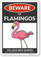 Funny Beware Signs: Beware of Flamingos You Have Been Warned S2-5494